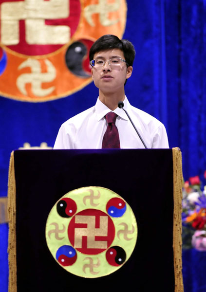 有一位是代表一组在洛杉矶中领馆前讲真相的七、八十岁老年学员交流他们如何克服重重困难,长期坚持在中领馆前抗议、讲真相的修炼体会。交流中提到其中一位年近八旬的王女士每次从家到中领馆来回需要六个小时;但她坚持每周一次前来讲真相,并在路途中发资料。