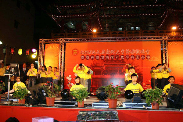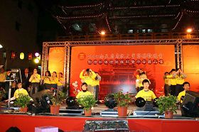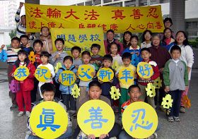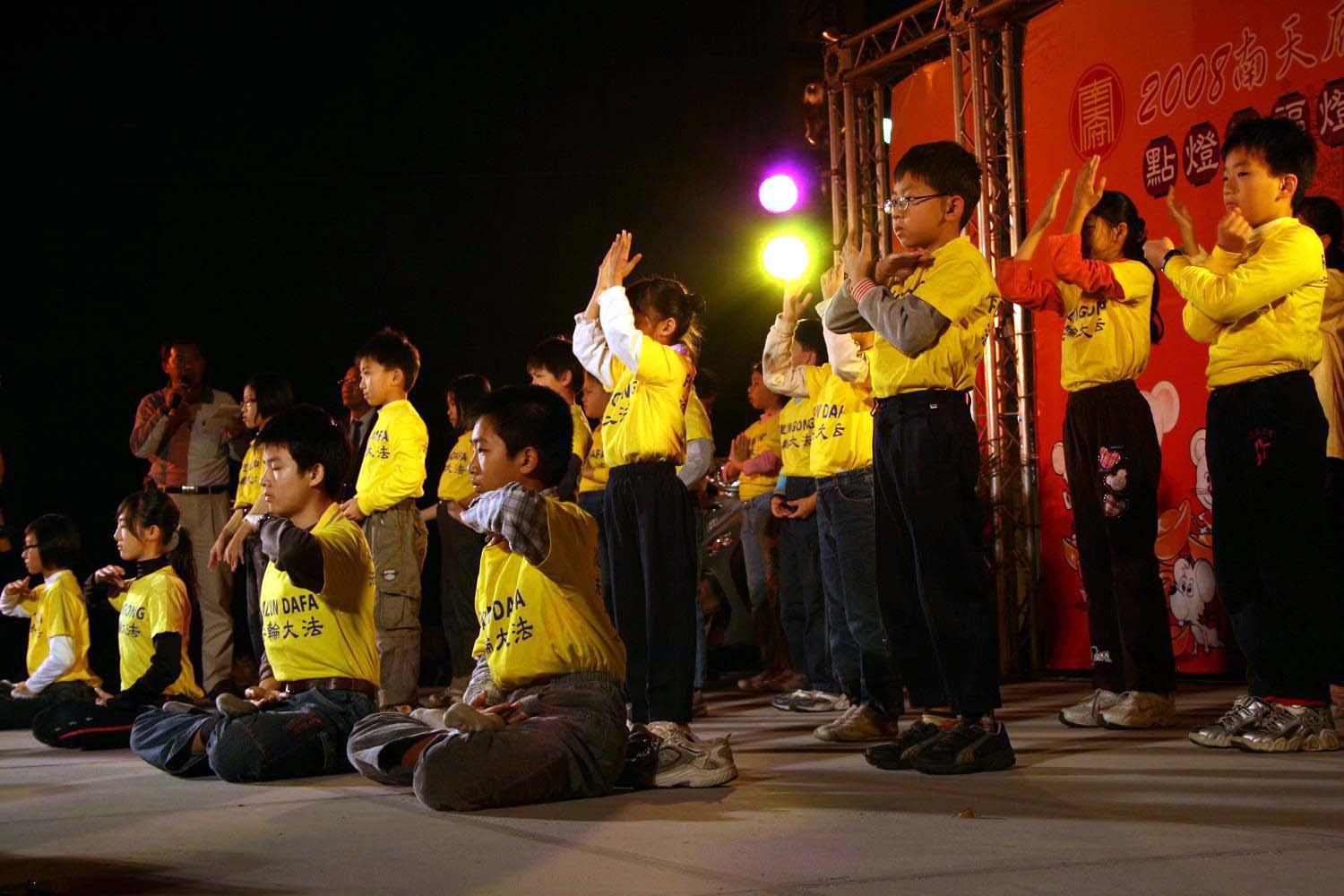 法轮大法小弟子在台上演示功法时,专注认真的神情、优美缓和的动作,让台下欢度节日的观众赞赏有加,「这群孩子真不简单,台下乱哄哄,嘈杂声那么大,还能如此平静祥和,认真表演,真不容易!」