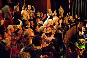 ![]() 保守的比利时观众观神韵晚会,热情高。 |