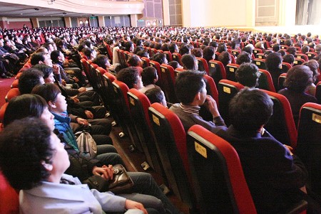 辛圭坤对在中使馆的干扰和妨碍下整个剧场连三楼都爆满,发出了舒心的感叹。