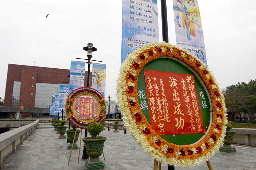 ![]() 立委赖清德、市议员萧博仁及陈宗彦致赠花篮,预祝神韵演出成功 |