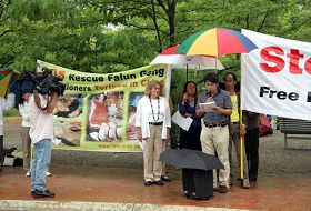![]() 法轮功学员冒雨在澳洲外交部楼前举行新闻发布会 |
