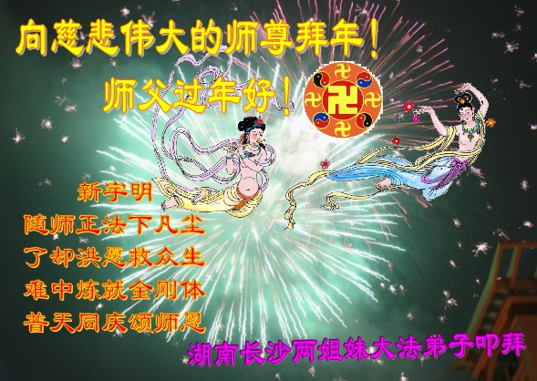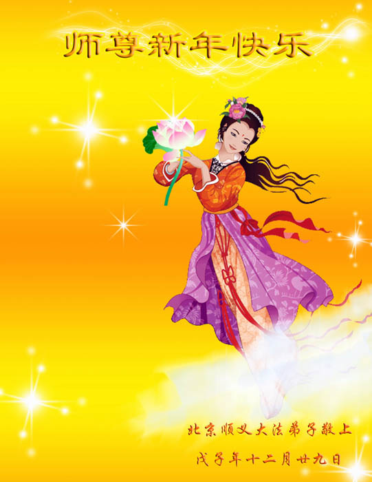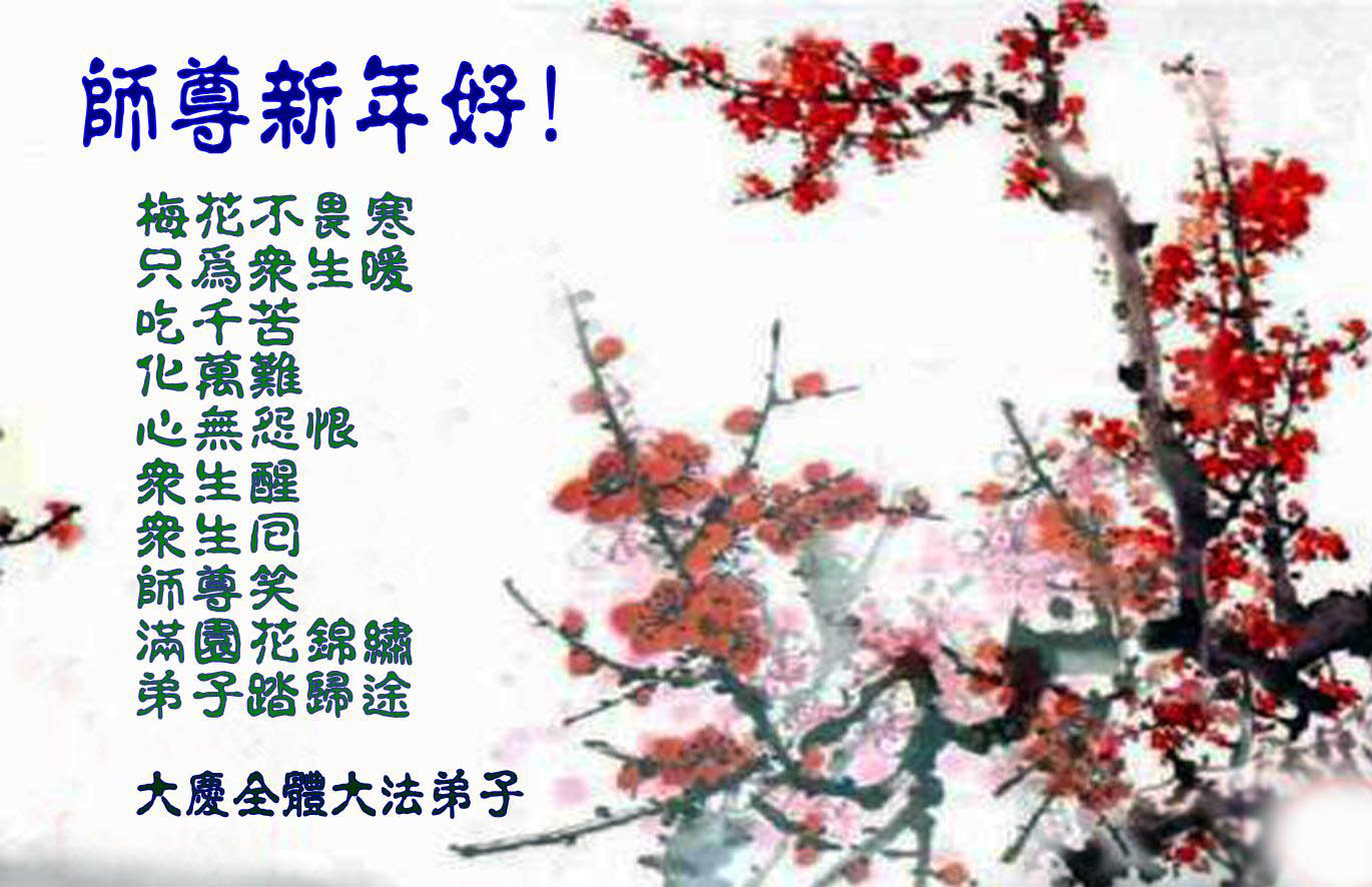 师父新年快乐!师父您辛苦了!弟子给师父拜年了!请师父放心,弟子一定遵照您的教导学好法、做好“三件事”。救更多的人,正念正行、证实大法,兑现史前誓约。