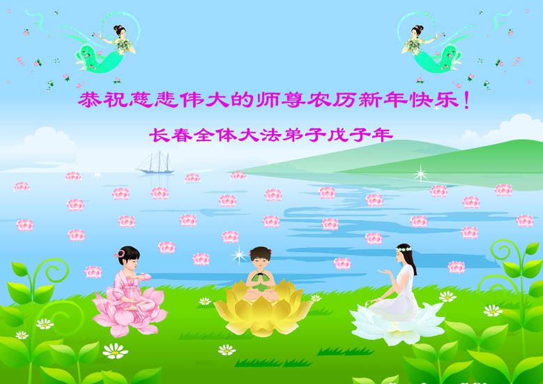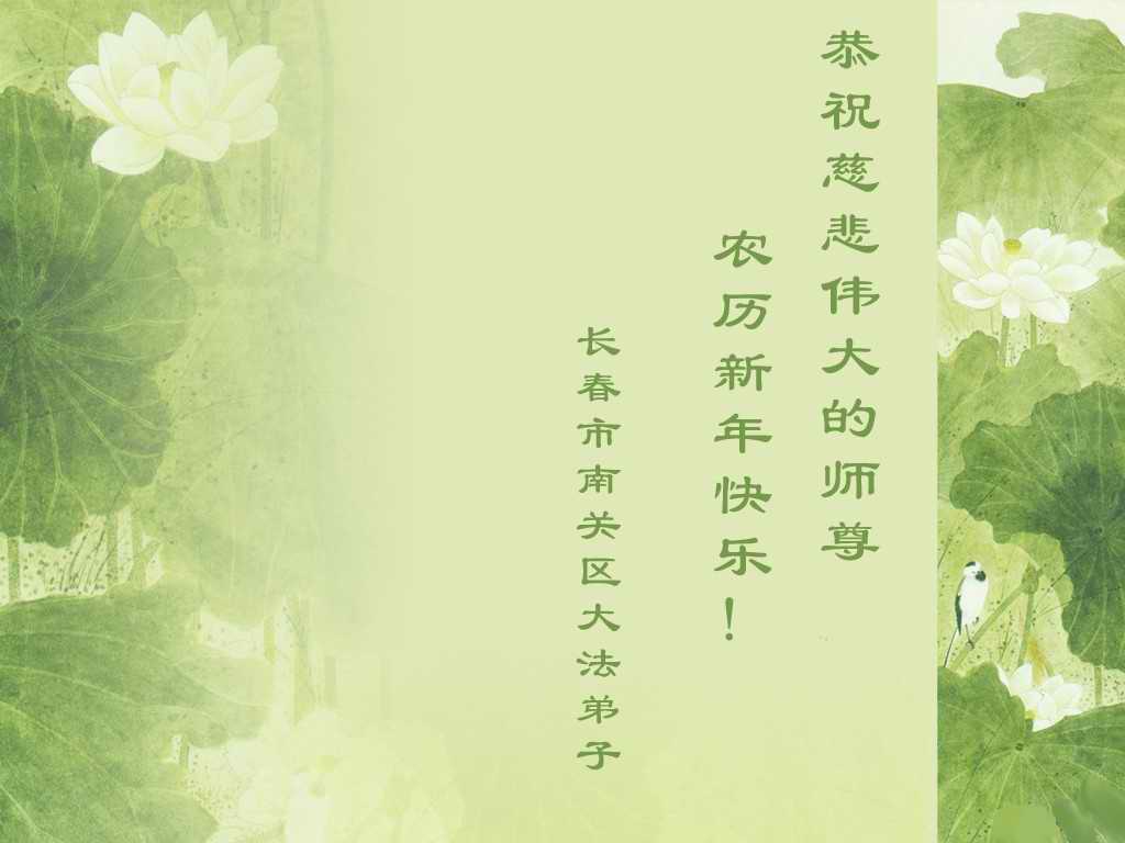 长春全体大法弟子给慈悲伟大的师尊拜年!敬祝师尊新年快乐!家乡弟子想念您、盼您归!家乡弟子敬祝师尊全家新年快乐!