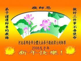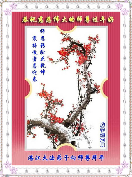 戊子新春来临之际,廊坊市文安县全体大法弟子给师父拜年!祝师父新年好!弟子们把该做的事定做好,抓紧利用好这不多的时间。