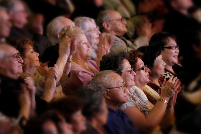 ![]() 戊子年大年初一,纽约观众在欣赏新!唐!人:华人新年晚会 |