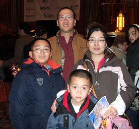 ![]() 郑先生夫妇俩带着二个儿子二月八日晚观看第十三场的新!唐!人:华人新年晚会,他们很兴奋的说每个节目都喜欢,很难用语言形容,真是太好了。 |