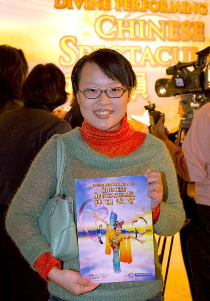 “很壮观,让人觉的很振奋人心,我去年看过,觉的很棒,所以今年再来看。印象最深刻的节目是打鼓,因为他在打的时候我的心情突然觉的很轻松、平和,好象得到解脱的感觉。今天整个节目带给我的讯息是在告诉我们要做好人,体会‘真善忍’与美好的滋味。”任职台南新格唱片行的沈小姐很激动的诉说着自己的感动。