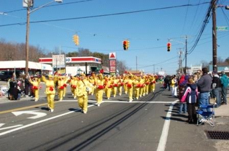 两天的游行都是从下午两点开始,每次游行都历时约两个小时。法轮功学员的队伍在两天的游行中都是唯一的一支华人面孔的队伍。三月八日游行当天一直下着大雨,但是法轮功学员仍在雨中坚持着,利用这宝贵的机会将大法真相传播给观众。三月九日是晴空万里,法轮功游行队伍中包括炼功方队、四大金刚和仙女队及腰鼓队。游行途中,观众发出欢呼声,并随着横幅上的字高喊“法轮大法”。