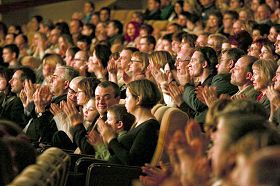 自从“神韵”登陆欧洲后,几乎每场演出结束时,都博得观众的长时间鼓掌,演员多次谢幕以答谢观众热情,场面热闹而温馨,而这种场面似乎已成为欧洲人观神韵的一种时尚。