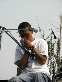 ![]() 于宙(戴眼镜者)是民谣组合“小娟(听歌)&山谷里的居民”中的打击乐手和口琴师。这是他生前演唱会上的照片和乐队专辑的封面照片。 |
