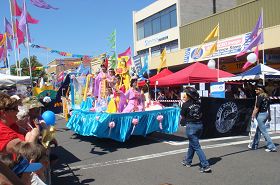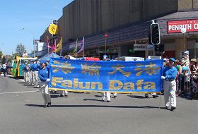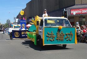 ![]() 法轮功学员参加彭里斯城艺术节巡游 |