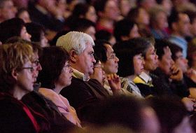 罗朗说,是第一次来看神韵晚会演出。他们是在一个商业中心看到的广告宣传,就想要来看晚会。