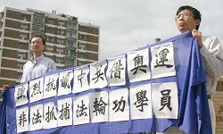 ![]() 休士顿法轮功学员中领馆前集会 强烈抗议中共借奥运加剧迫害法轮功 |