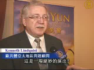 欧洲共同体亚太地区问题顾问Kenneth Lindquist也是三月二十日神韵晚会瑞典首演的座上嘉宾之一,对于晚会的演出水准赞不绝口,他说:“这是一场绝妙的演出!制作非常的成功!”
