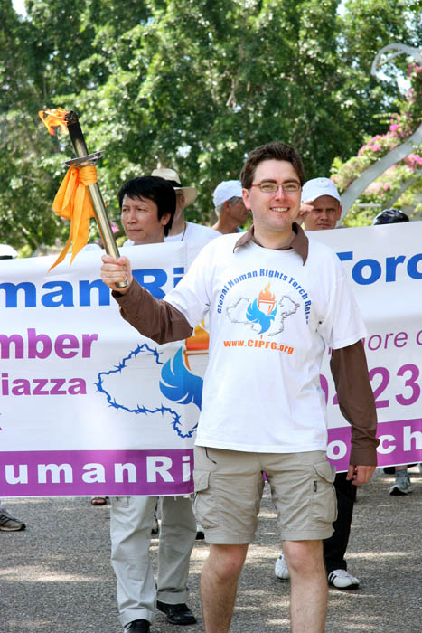 「人权圣火」继二零零七年十月二十七日登陆澳洲首站悉尼后,又先后传递到澳洲曼丽市、格拉夫顿市和昆士兰省首站图文巴市,受到当地政府和民众的支持。法轮功受迫害备受瞩目。