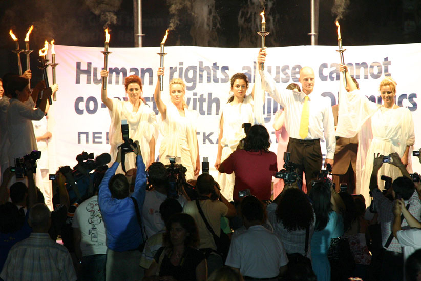 良知不会沉默。二零零七年八月九日,由世界各国三百多名政要、医生、律师等组成的“法轮功受迫害真相联合调查团”(CIPFG)发起,并在社会各界代表正义善良人士的支持下,在奥林匹克发源地希腊,位于希腊国会前、雅典市中心的宪法广场上,点燃了「人权圣火」,揭露中共迫害人权,特别是迫害法轮功学员的恶行,呼吁国际社会共同制止迫害,拒绝让象征人类和平自由的奥运,变成中共实行独裁和镇压的“血腥奥运”。