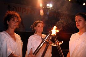 二零零八年二月十八日,「人权圣火」抵达以色列,在特拉维夫市市中心举行了火炬接力仪式。由于二战时犹太人民所遭受的大屠杀与今日法轮功学员所受迫害的相似,「人权圣火」活动在以色列引起巨大社会反响与共鸣,全国性电视台、电台、报纸、网站等对活动进行了密集报导,各大宗教领袖签订共同契约,要求中共立即停止反人类罪行。