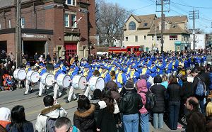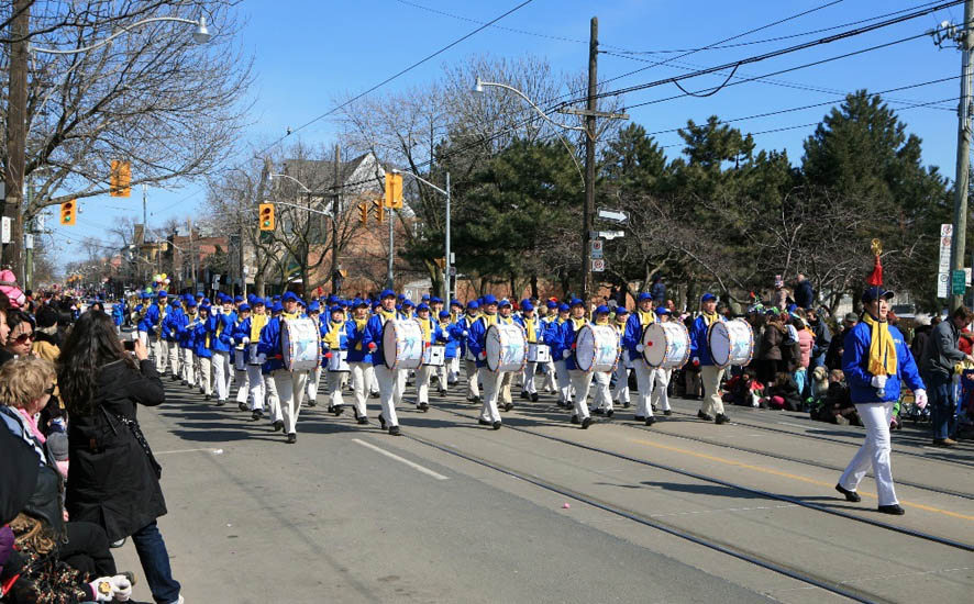 ![]() 法轮功天国乐团第一次应邀参加多伦多复活节游行,受到观众的欢迎 |