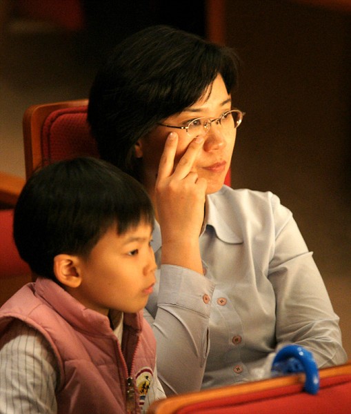 ![]() 专注观赏神韵晚会的母子 |