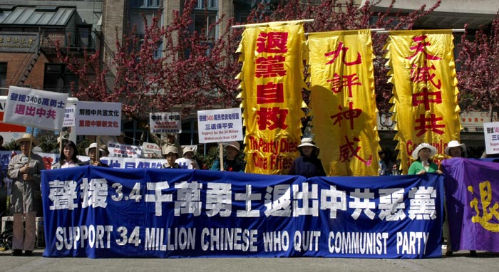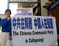 ![]() 旧金山各界人士于二十三日在旧金山花园角广场举行集会,声援三千四百万中国人退出中共。 |