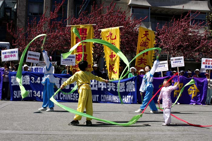 活动当天的旧金山风和日丽,集会中,天国乐团为现场观众演奏,并有明慧学校的学生们表演舞蹈,庆祝越来越多的中国人觉醒。集会上,与会会者回顾了在过去数十年的历史中,中共恶党屠戮无数无辜的事实;同时指出,如今中共的屠刀并没有放下,残杀民众的事件仍在继续。