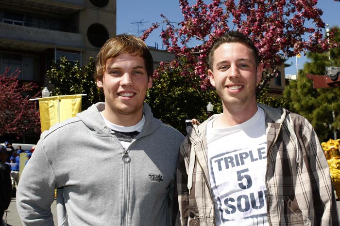 ![]() 德国大学生Wiuie Magnus Hudemann和Michael Boret被集会现场所吸引,在了解集会内容后,他们表示支持,并谴责中共恶党对人权的迫害。 |