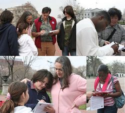华盛顿的教师希帕德(SHEPARD)带着来自巴哈马群岛的一位友人经过白宫时,看到集会场面,她们当场签名呼吁布什制止迫害。希帕德说,“世界都会关注和倾听,我们都应该予以关注。”