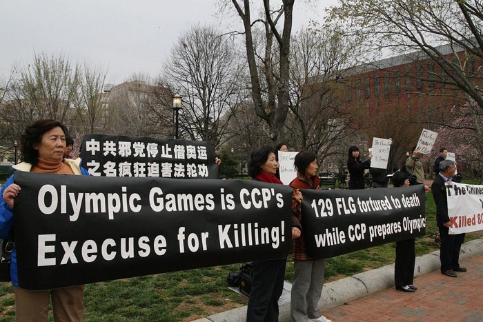 ![]() 美国首都华盛顿特区部份法轮功学员在白宫前的拉菲叶广场集会,抗议中共借奥运之名加剧迫害 |