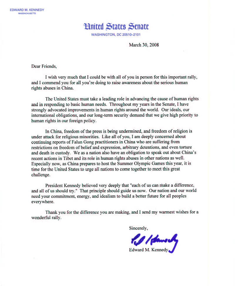 肯尼迪参议员信件的译文如下: