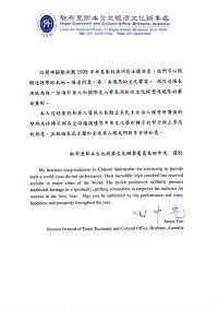 ![]() 台湾驻布里斯本台北经济文化办事处处长田中光贺信 |
