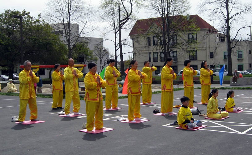 法轮功学员参加马地臣花园改建落成仪式,并做了功法演示 |