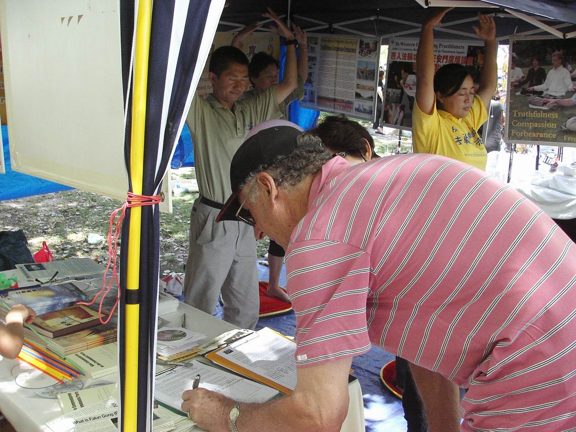 许多民众一看到发传单的学员,就说:“法轮功,我知道。(制止迫害的)签名表格在哪里?”