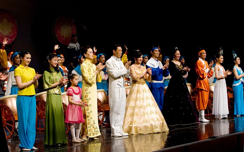 ![]() 三月三日瑞士日内瓦的首场演出结束,神韵艺术团演员谢幕。 |