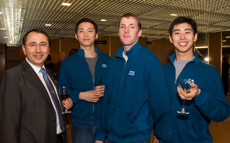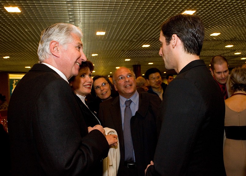 ![]() 瑞士财阀政要名流观看神韵晚会在日内瓦的首场演出后,在贵宾酒会上与神韵艺术团的艺术家和演员交谈,合影留念。 |