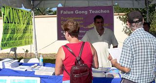 当地法轮大法学员在展位上摆放了各种有关法轮大法洪传世界的资讯,以及大法自一九九九年至今在中国大陆受残酷迫害的真相资料。不少行人停步驻留,法轮功学员们悉心的向他们介绍法轮大法的美好以及在中国发生的迫害事实。