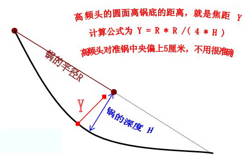 焦距Y = R*R / (4*H),其中R是锅的半径,H是锅深。