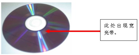 昨天自己在刻录真相DVD时出现了一点问题:连续刻到第九个盘时,突然出现刻录错误提示,随后刻录失败,把光盘拿出来一看,发现光盘已经出现了一道宽亮带,如下图所示: