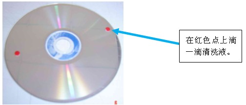 买了一个刻录机清洗盘(带清洗液),10元,在下图的红色处滴一滴清洗液,然后将清洗盘放入刻录机中转动几分钟,将其取出;