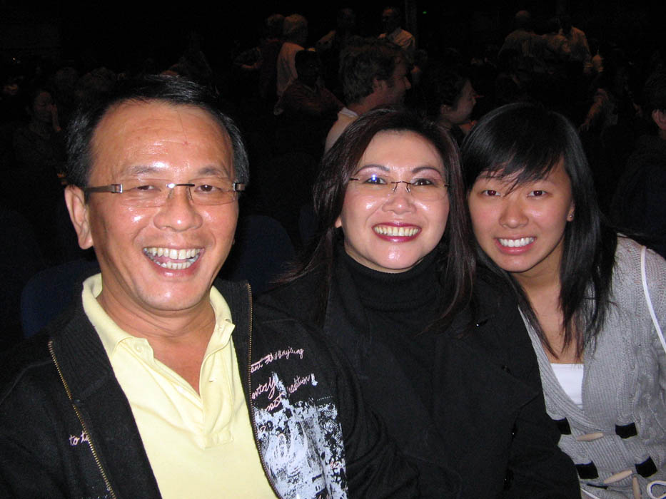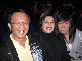 ![]() 李先生与太太、女儿在中场休息时,他们对神韵精彩绝伦的表演内容赞不绝口。 |