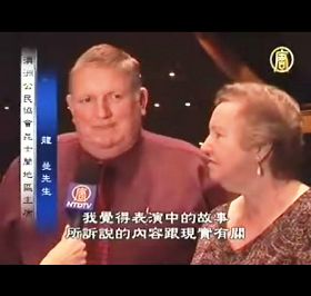 刘先生并表示,他认同中国、认同中国文化,但不认同共产党:“在这之前我都有看到广告,就是过年期间在纽约演出。看见内容呢就感觉到,就跟我的想法一样。我认同中国、认同中国文化,不认同共产党,看这个节目的感受也这样,一切在弘扬中华文化和中国历史,这是我们共同的、共同点。”