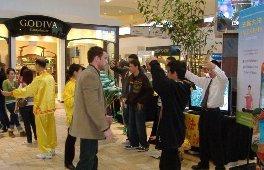 ![]() 不少年轻人当场跟法轮功学员学习功法 |