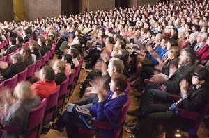![]() 观众用热烈的掌声表达对神韵晚会精彩节目的赞叹 |