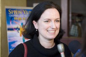 慕尼黑北部英戈尔斯塔特市(Ingolstadt)一家芭蕾舞学校的校长阿妮塔.哈斯女士(Anita Haas)高兴的说,她在不久前看到一幅神韵艺术团将要到慕尼黑演出的广告,色彩艳丽的服装瞬间就吸引了她的注意力,“所以我就想一定要来看一看。”