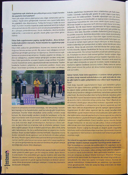 【明慧网二零零八年四月二十四日】以介绍多元文化、艺术和健身为主的土耳其畅销杂志《Network Marketing》,在四月刊的首要位置,刊登了一篇题为《至简至深的修身养性之道--法轮大法》的文章。这篇文章是作者在专门采访了几位法轮功学员后而撰写的。文章用三个整页的篇幅,较为详尽的介绍了法轮功。