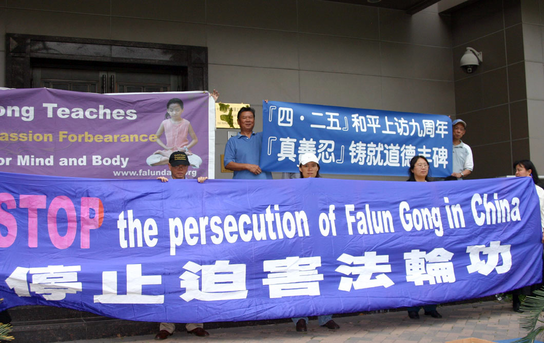 ![]() 休士顿中领馆前,法轮功学员纪念四•二五九周年 |