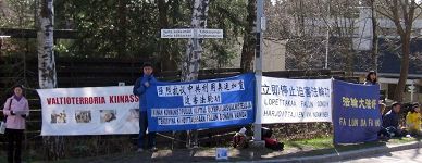 ![]() 芬兰法轮功学员中使馆前纪念四•二五,抗议中共迫害 |