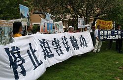 华盛顿DC的大法弟子陶女士说,中国同胞在听到法轮功受迫害真相后,有的当场宣布退!党!,这样的事情在中国大使馆这里经常发生。