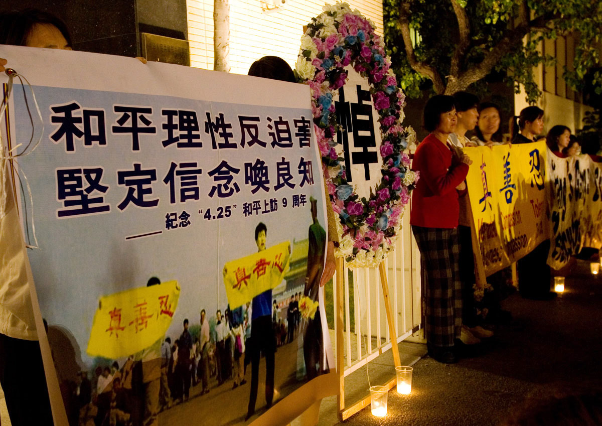 洛杉矶法轮功修炼团体发言人、加州大学洛杉矶分校(UCLA)教授吴英年说:「我们要告诉世界的人们,在经历了九年的打压和血腥迫害之后,我们仍然坚持我们的信仰,我们仍然坚持我们修炼做好人的权利,我们呼吁各国政府、组织和海内外的华人共同谴责中共的暴行,制止中共对法轮功的迫害。」