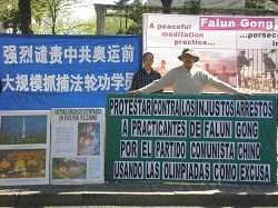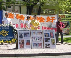 法轮功学员JOAQUIN在发言中说:“法轮功教人向善,修炼人按照真、善、忍的原则要求自己,事事处处为他人着想。自己修炼法轮功后改变很大,不仅心灵道德得到提升,身体也很健康,每一个真正修炼的人对此都有切身体会。而对这么好的功法,中共却丧心病狂的疯狂迫害,是其邪恶本质所使然,其目的就是摧毁人类的道德良知。”他还说:“九年来,法轮功学员置生死于度外,坚持不懈的告诉人们真相,就是要让人们认清中共的邪恶本质,脱离它、唾弃它,做一个堂堂正正的中国人,为自己的生命选择一个美好光明的未来。”